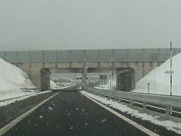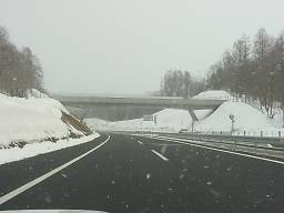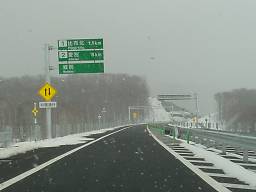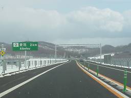 2004年4月4日撮影。 旭川紋別道の他の区間はこちら 2004年3月27日に開通した、旭川紋別自動車道の比布JCTから愛別ICまでの区間を通ってみた。 旭川紋別道開通の横断幕(写真1)のかかる道央自動車道を旭川方面から北上し、比布JCT(写真3)で分岐して旭川紋別道に入る。 道央道の本線をくぐる(写真4)と、その先に比布JCT料金所(写真5)があり、ここで今走ってきた道央道の通行料金を支払う。 料金所を出るとゆるやかにカーブし、切り通しを抜けると追越車線が始まり(写真9)、間もなく比布北IC出口がある(写真10)。 比布JCTから比布北ICまではわずか2km足らずとかなり近く、比布JCT自体も国道40号から1kmほどしか離れておらず、比布北ICと国道40号のアクセス距離と変わらない。 さて、比布北IC合流を過ぎると追越車線の片側2車線区間も終わり、再び切り通しに入る(写真11、12)。 この先、盆地を縦断するように盛土された区間を抜け、国道39号・石狩川・JR石北線をまたぐ手前から追越車線が始まるが、追越車線にはポールが立てられ走れないようにされており、追越車線の表示と思われる標識はカバーされている(写真16、17)。 その延長については、2004年中に愛別ICから愛山ICまで開通予定とのことで、この追越車線のポールや出口の本線部分に設置された赤白のバリケード(?)(写真19)が見られる期間もそう長くはない。 愛別ICの出口は、旭川紋別道の開通に先駆けてJR線との立体交差化や交差点改良が行われた道道愛別当麻旭川線(道道140号)に接続している。 〈蛇足〉 |