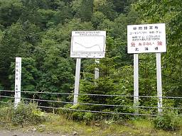 この付近には野営場内の鹿の湯のほかにもいくつか野湯があり、写真6の砂防ダムの近くには「チニカの湯」があるそうである。