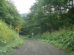 然別峡峰越線に入ると、しばらくは普通の砂利道である。