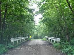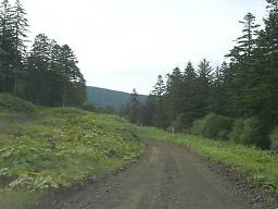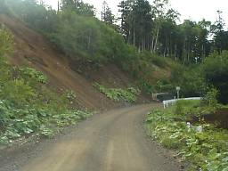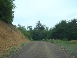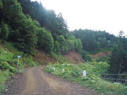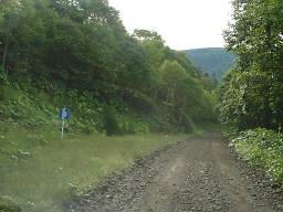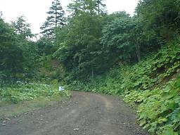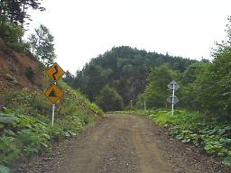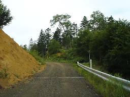 しばらくそのような区間が続いたあと、下っていくと再び普通の砂利道に戻り、道道85号鹿追糠平線との交点に至る(写真48)。この近くには山田温泉がある。